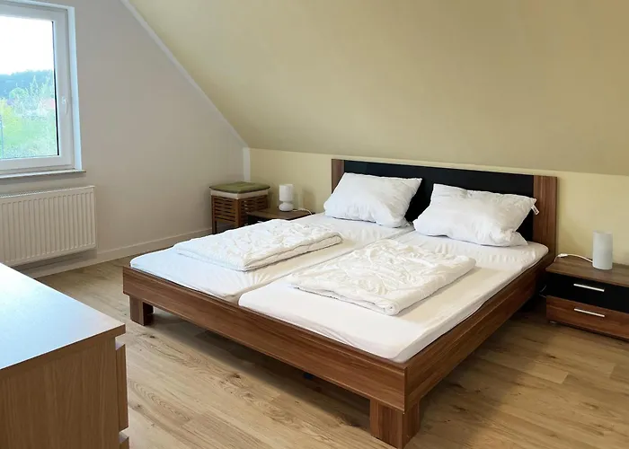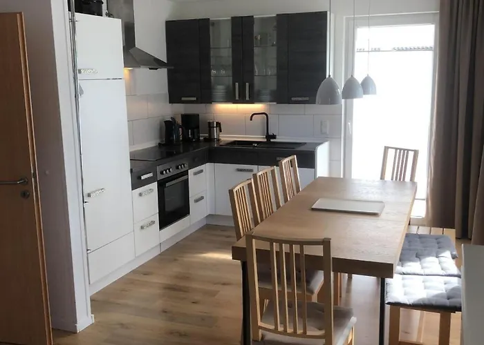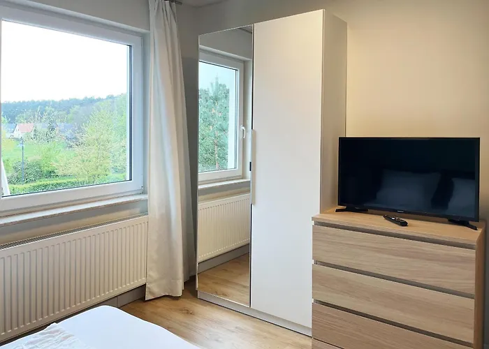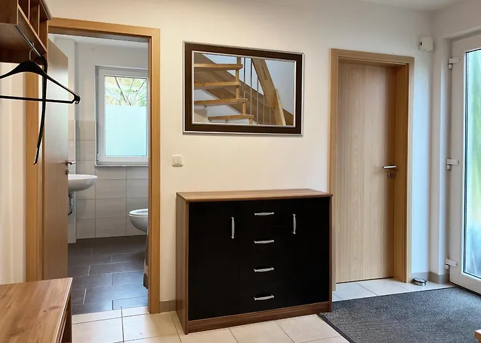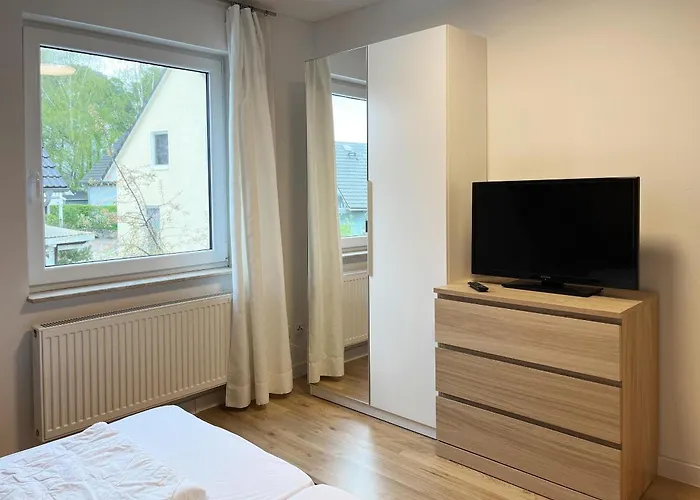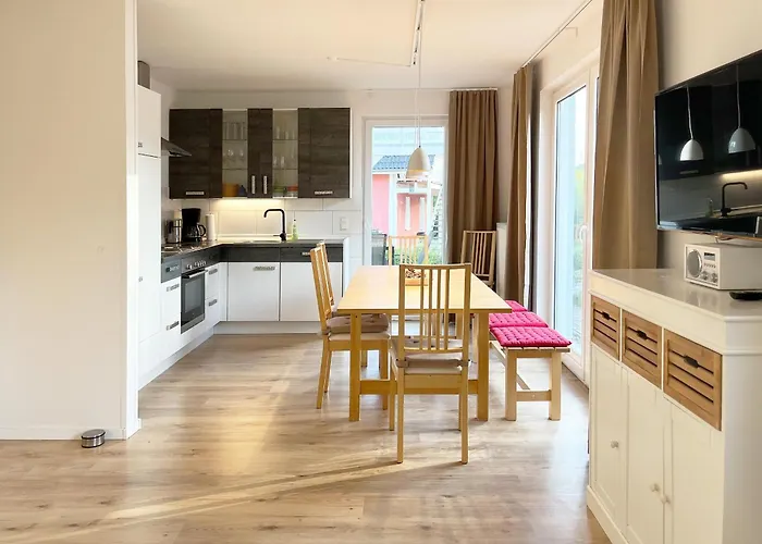 La villa "Strandhaus" Unter Den Kiefern 101 cuenta con una cocina completa con un lavaplatos y un horno. Los huéspedes pueden cenar en el restaurante Gasthof Waldeck, situado a unos 200 metros. Situada bastante cerca de la villa, la estación de autobuses Marienfelde ofrece opciones de transporte en las inmediaciones.